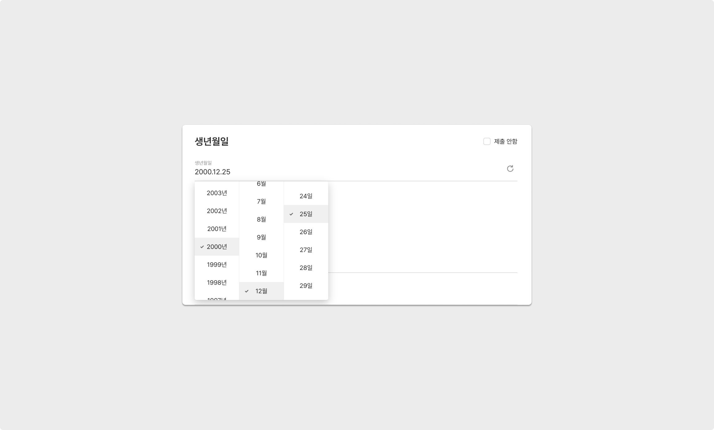 클릭의 형태로 지원자의 생년월일을 입력할 수 있습니다.