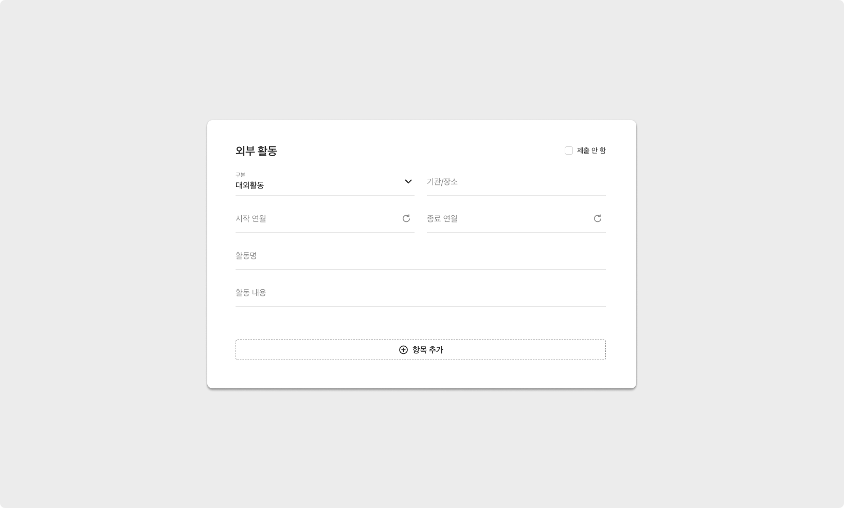 외부 활동 (제출 유의사항 추가 가능)