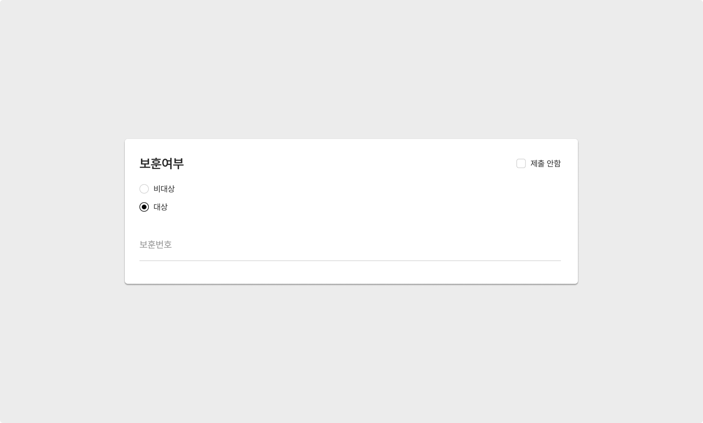 보훈여부를 선택할 수 있으며, 대상의 경우 보훈번호를 필수적으로 입력해야 합니다.