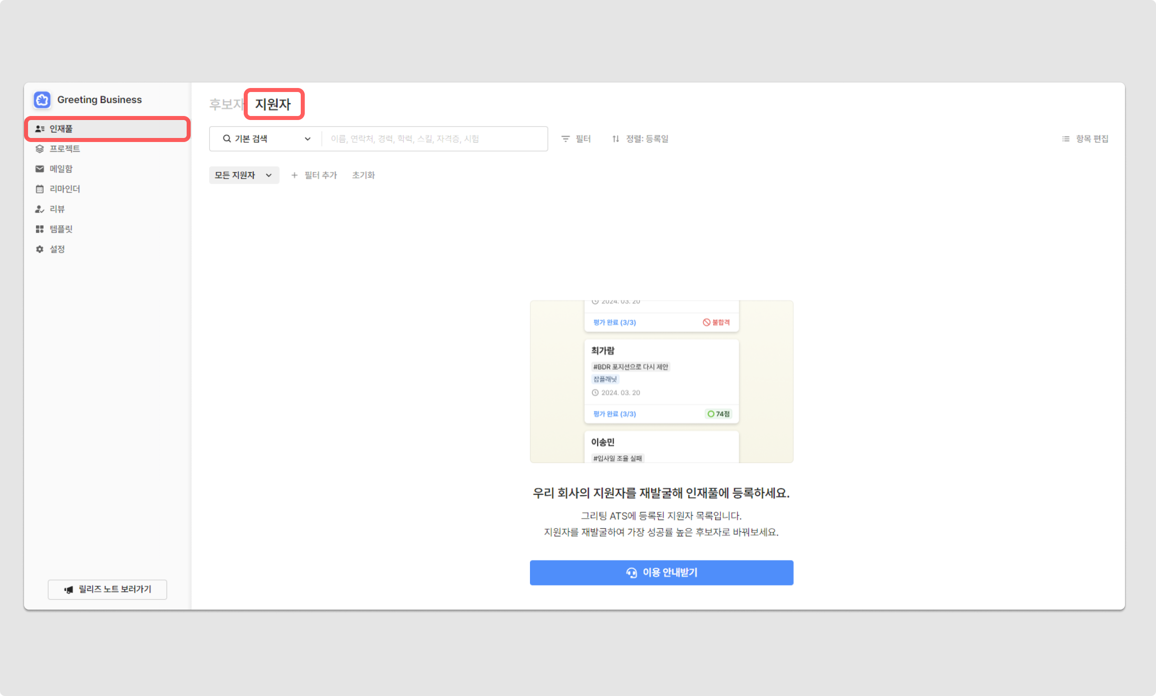 그리팅 ATS에 등록된 지원자 정보를 그리팅 TRM으로 불러올 수 있습니다.