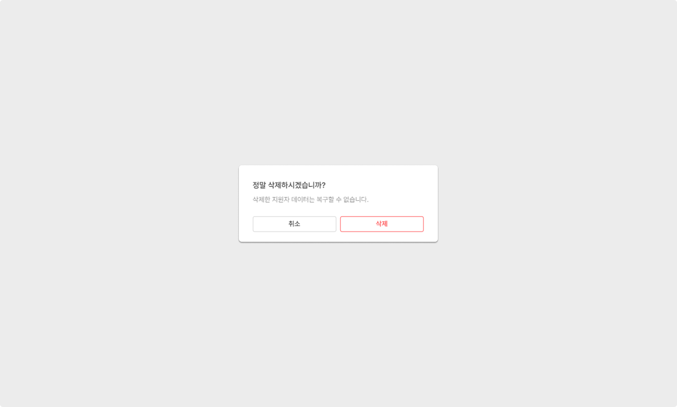 삭제된 데이터는 복구할 수 없으므로 주의해 주시길 바랍니다.