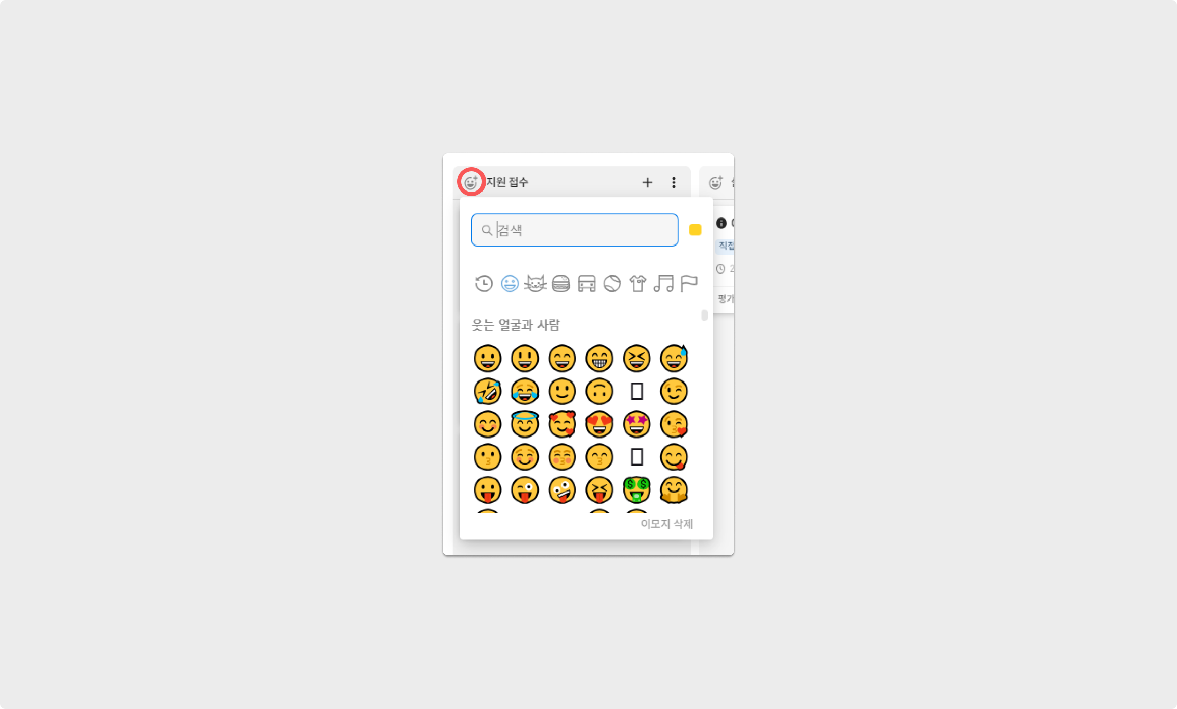 또한, 각 컬럼의 상단에 위치한 이모지 버튼을 클릭하면 컬럼 이름에 이모지를 추가할 수 있습니다.