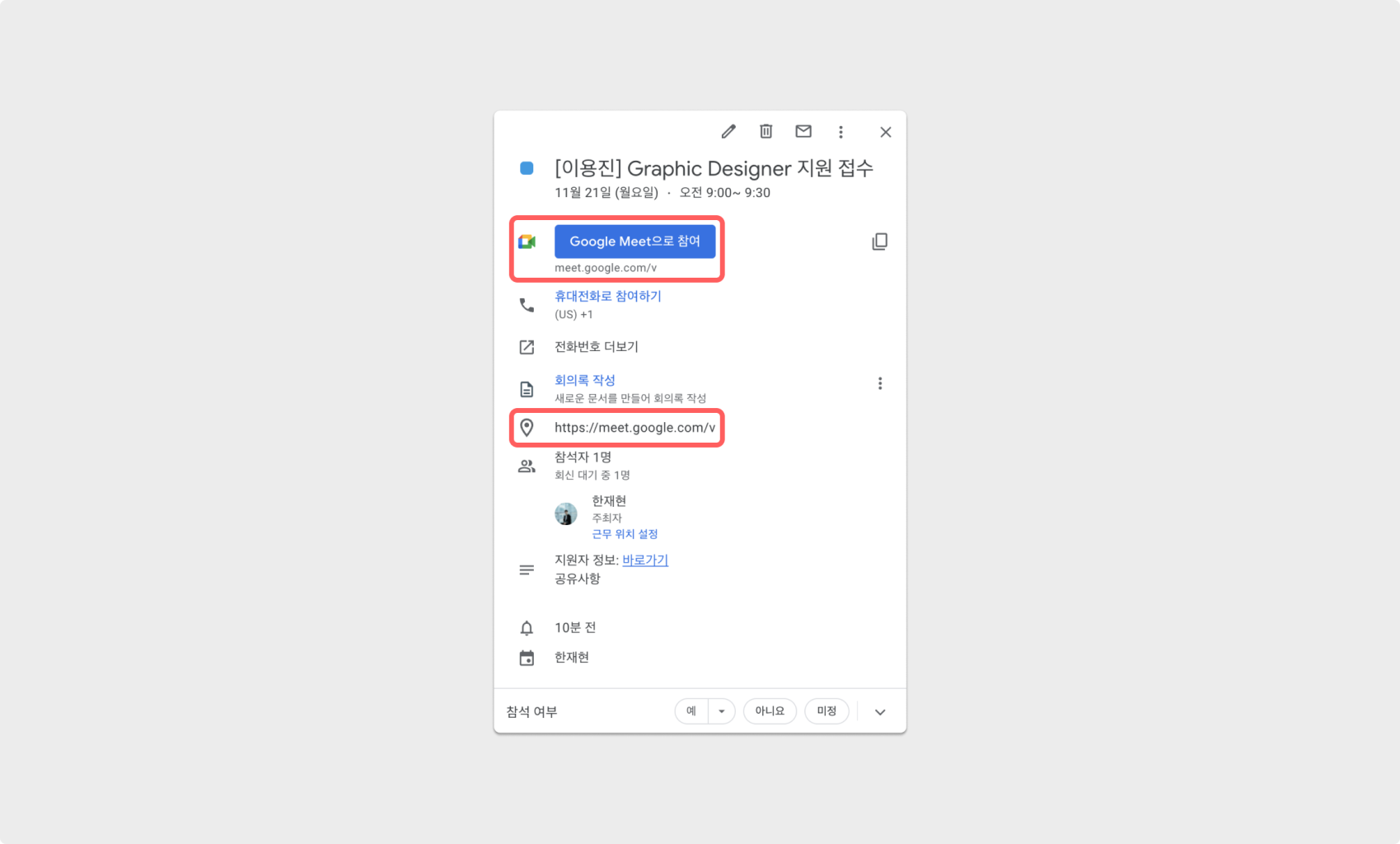 연동한 각 캘린더에서도 링크를 직접 확인할 수 있습니다.