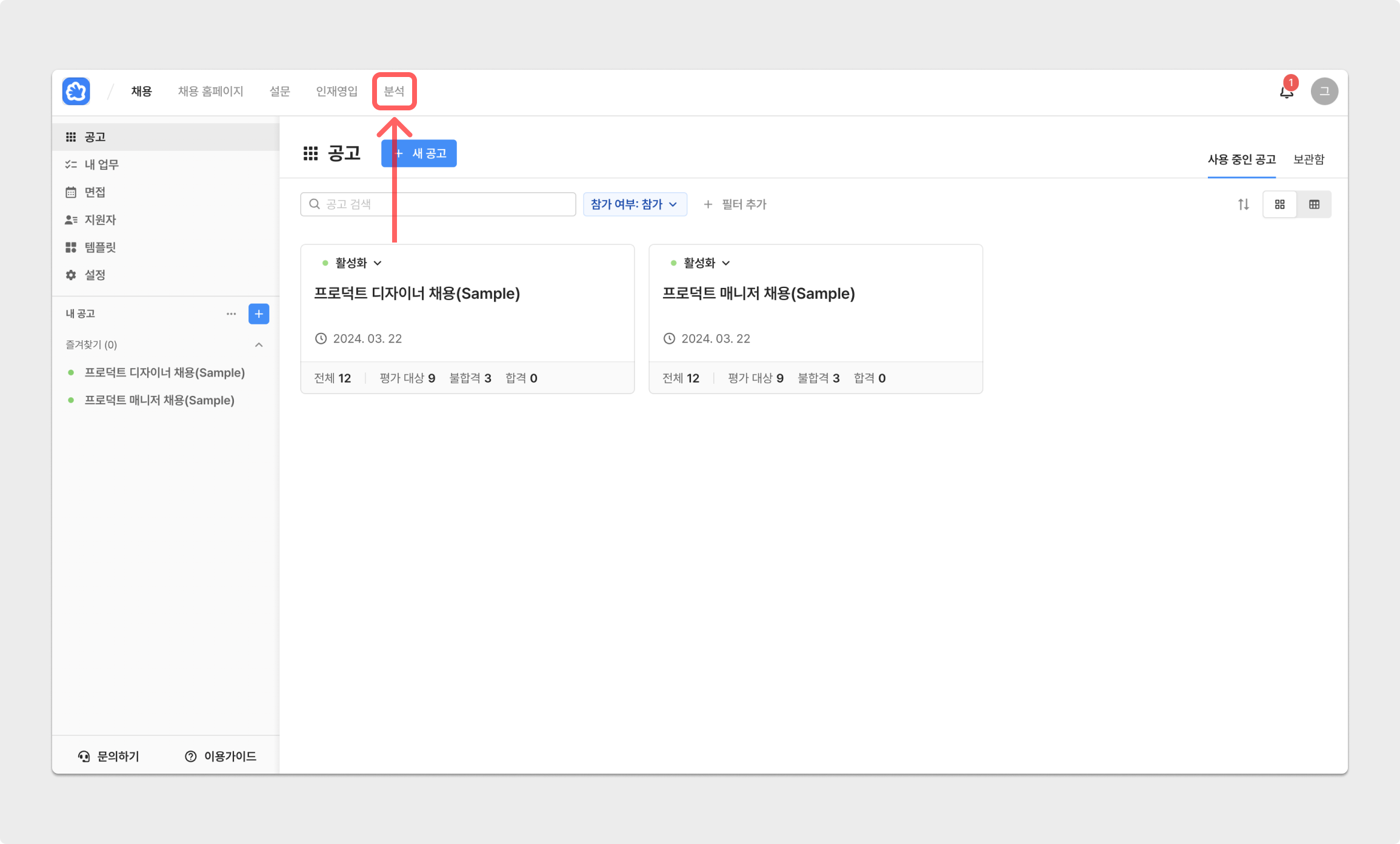 워크스페이스의 소유자 및 관리자 역할은 커스텀 대시보드에 자유롭게 접근 가능합니다. 일반 역할은 커스텀 대시보드에 접근할 수 없으나, 공고별 대시보드는 본인이 참여한 공고에 한해 접근 가능합니다.