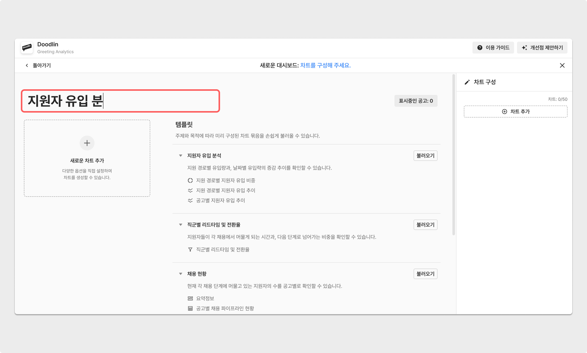 생성한 대시보드 페이지의 이름을 입력해 주세요.