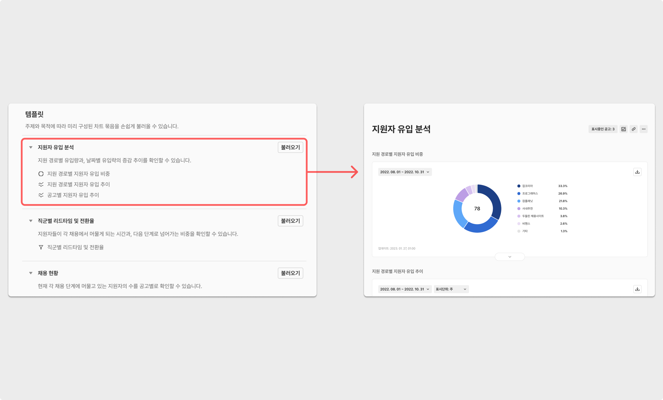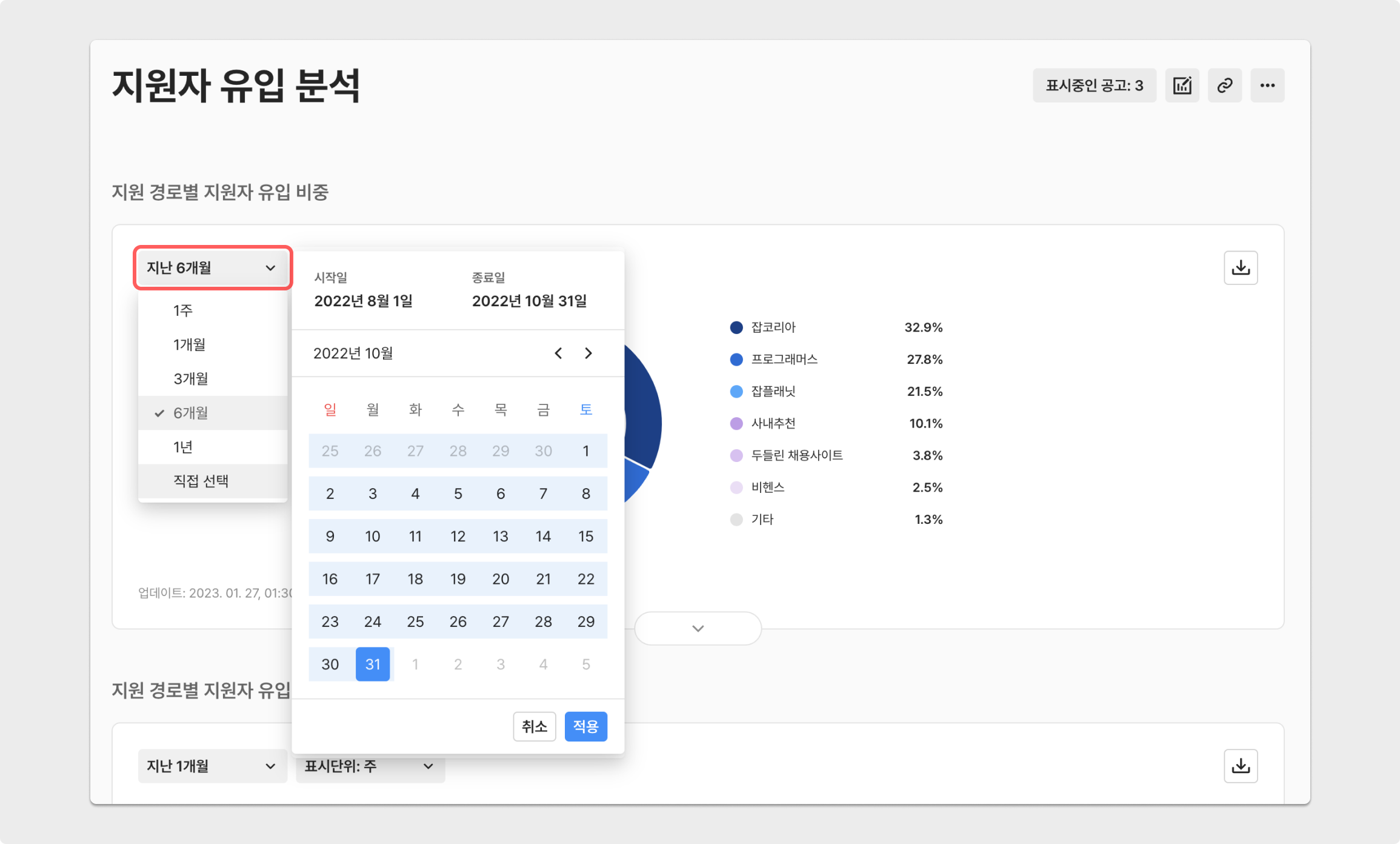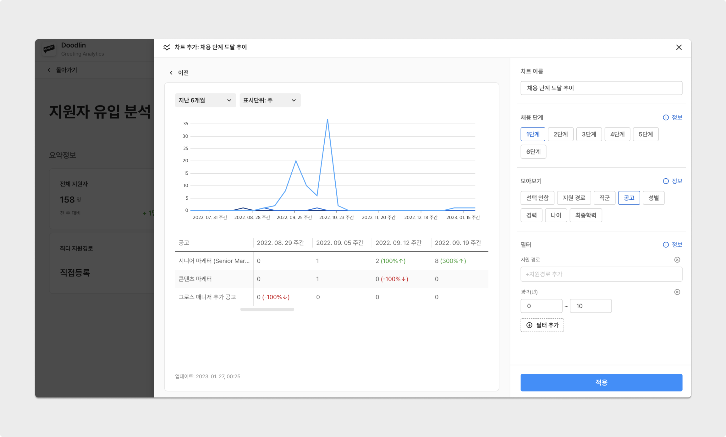 얼마나 많은 지원자가 유입되었는지의 추세를 확인할 수 있습니다.