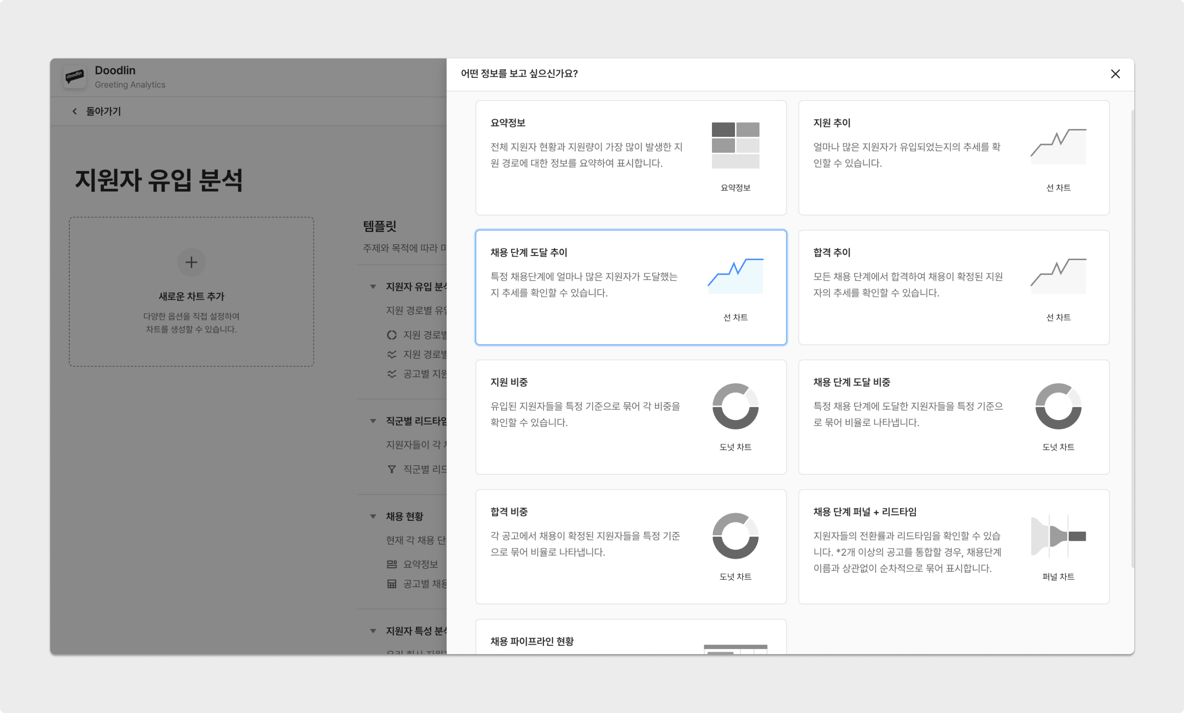 특정 채용단계에 얼마나 많은 지원자가 도달했는지 추세를 확인할 수 있습니다.