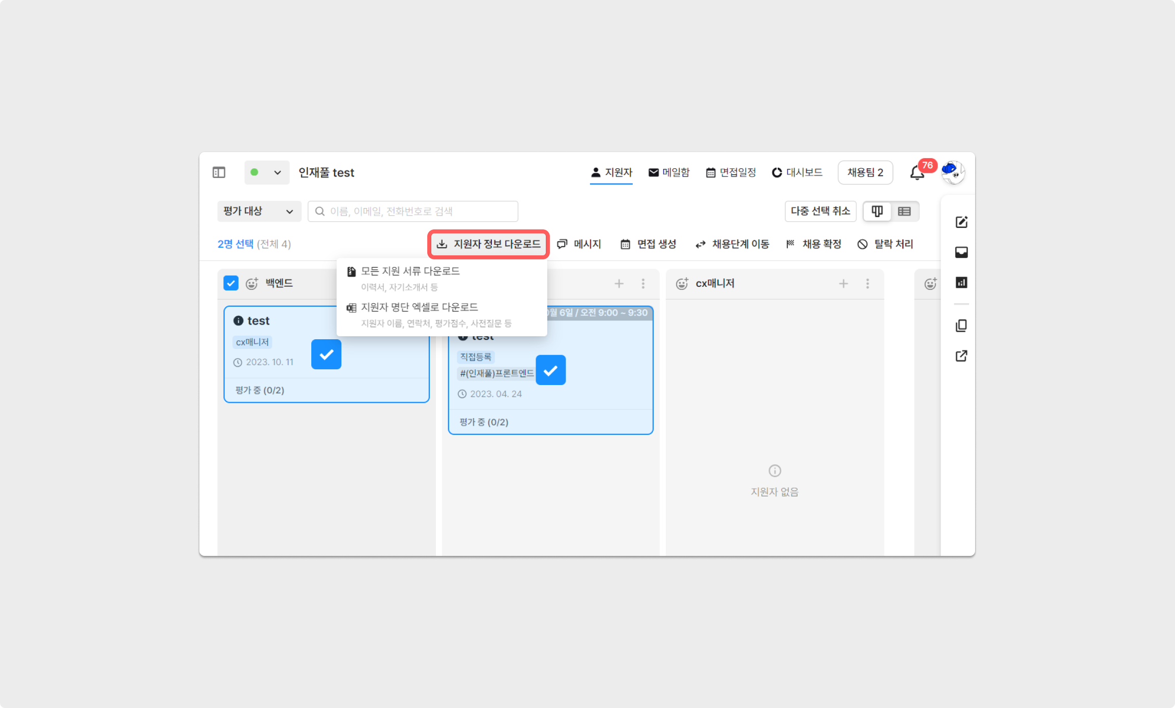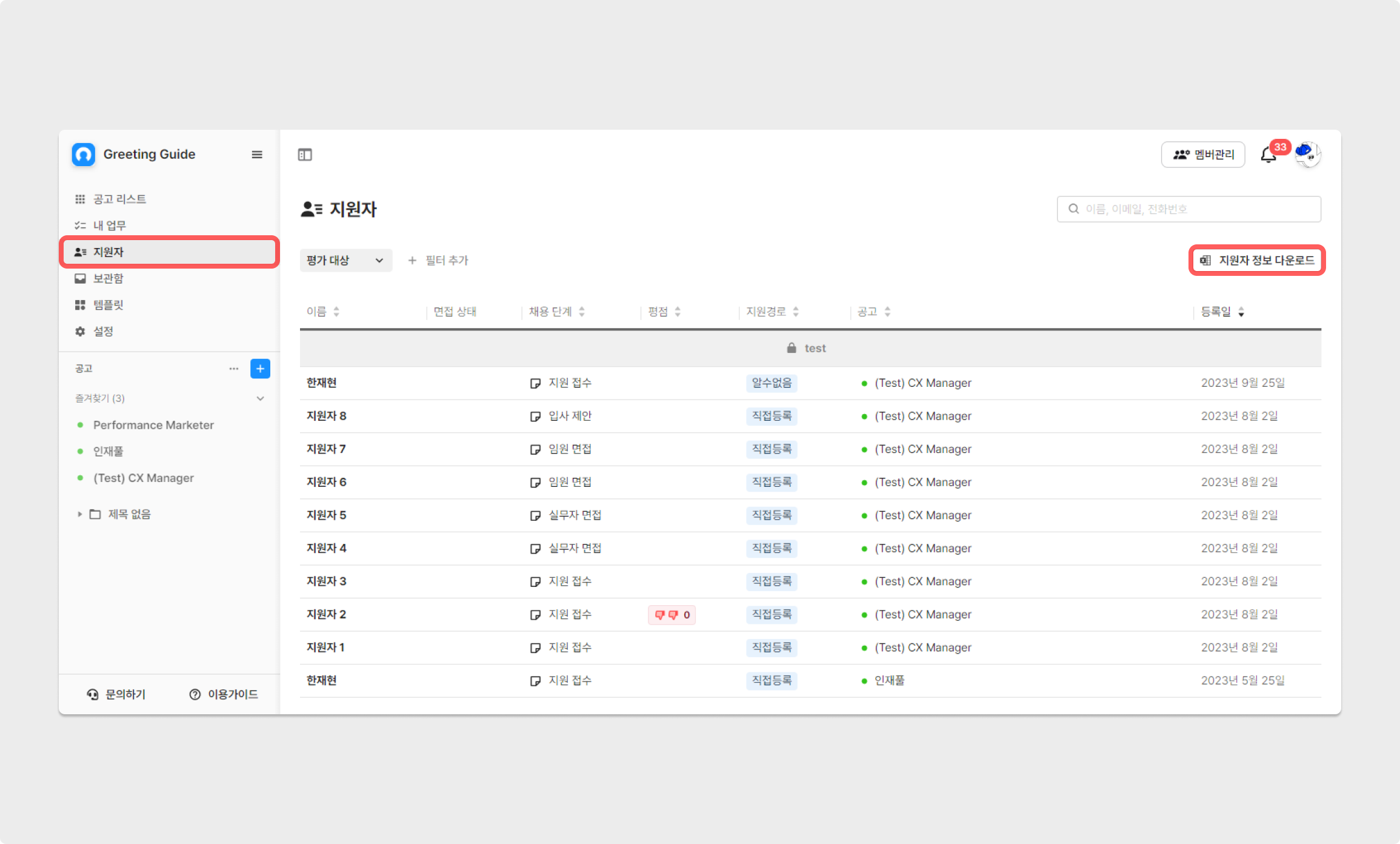 열람 권한이 있는 지원자 정보만 다운로드 파일에 포함됩니다.