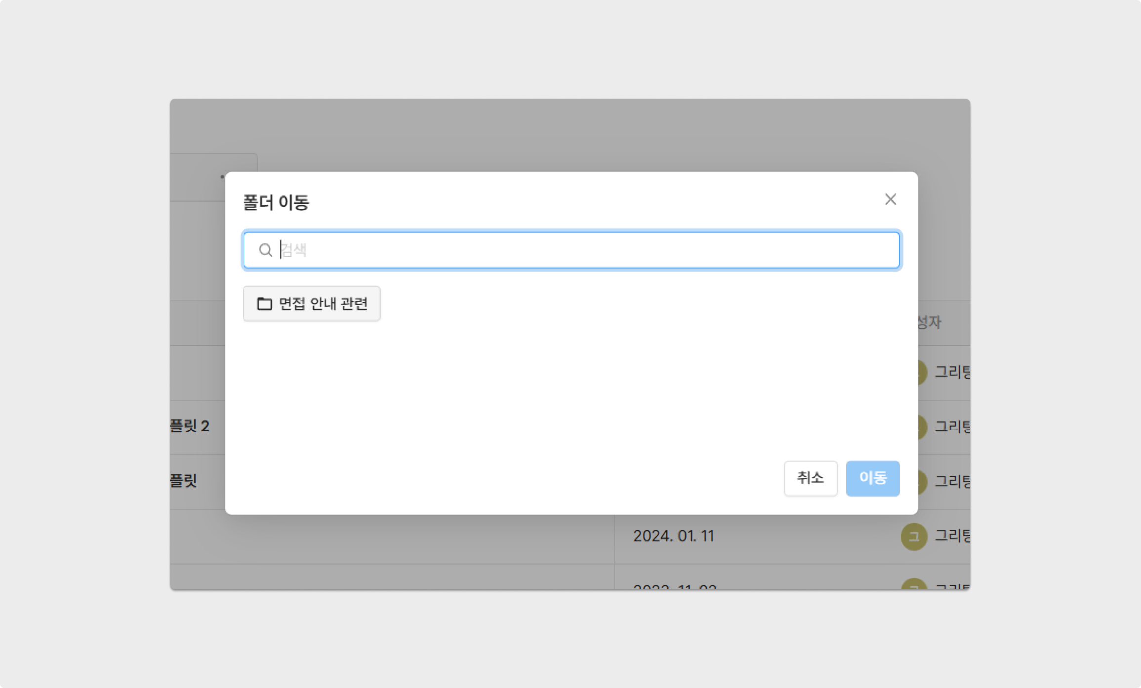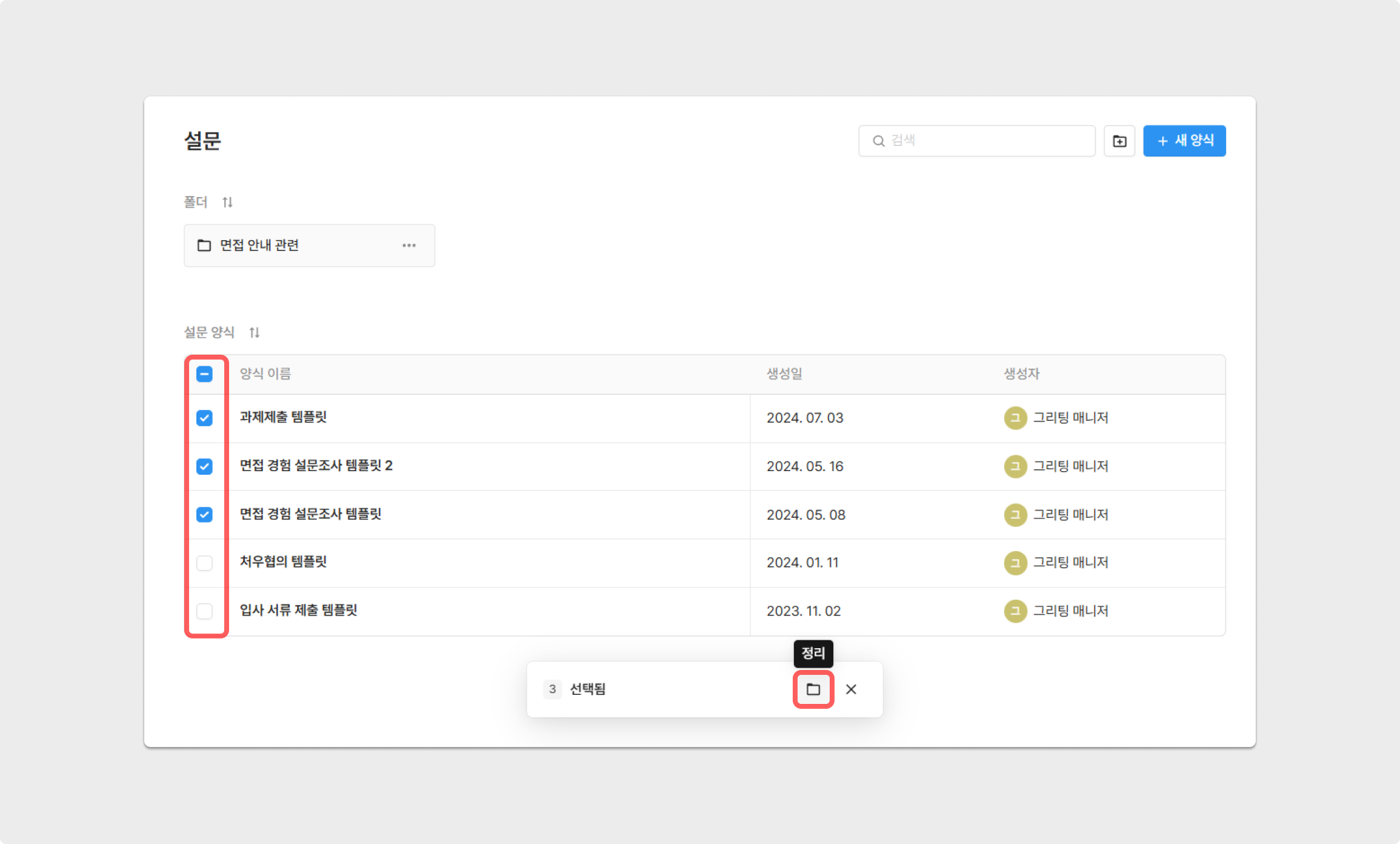 분류하고싶은 설문을 선택하여 폴더로 이동합니다.