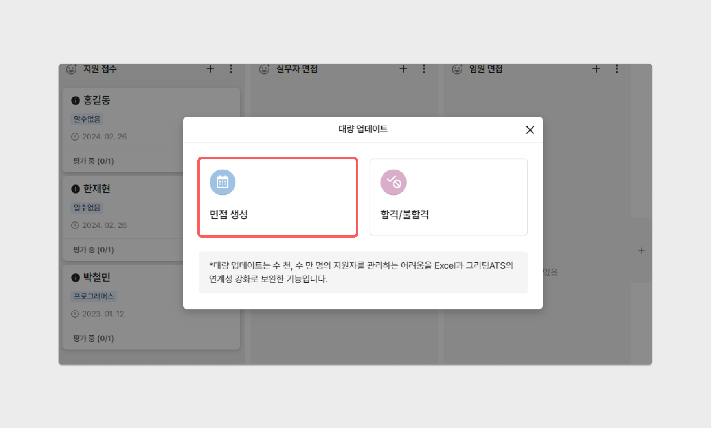 대량 업데이트의 그룹 면접 기능을 통해 면접 생성 시,