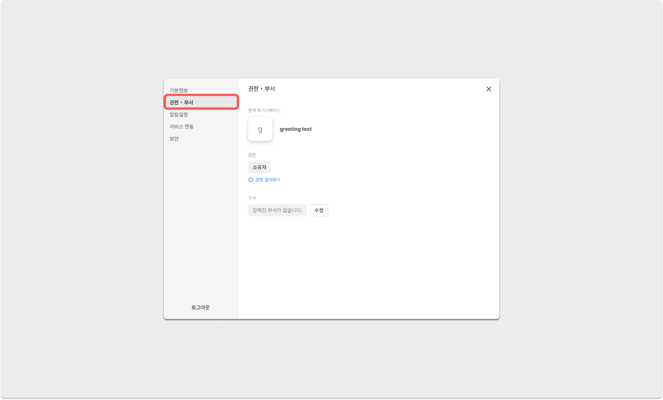 본인의 [부서 변경]이 가능하며, 워크스페이스의 소유자인 경우 소유권을 양도할 수 있습니다.