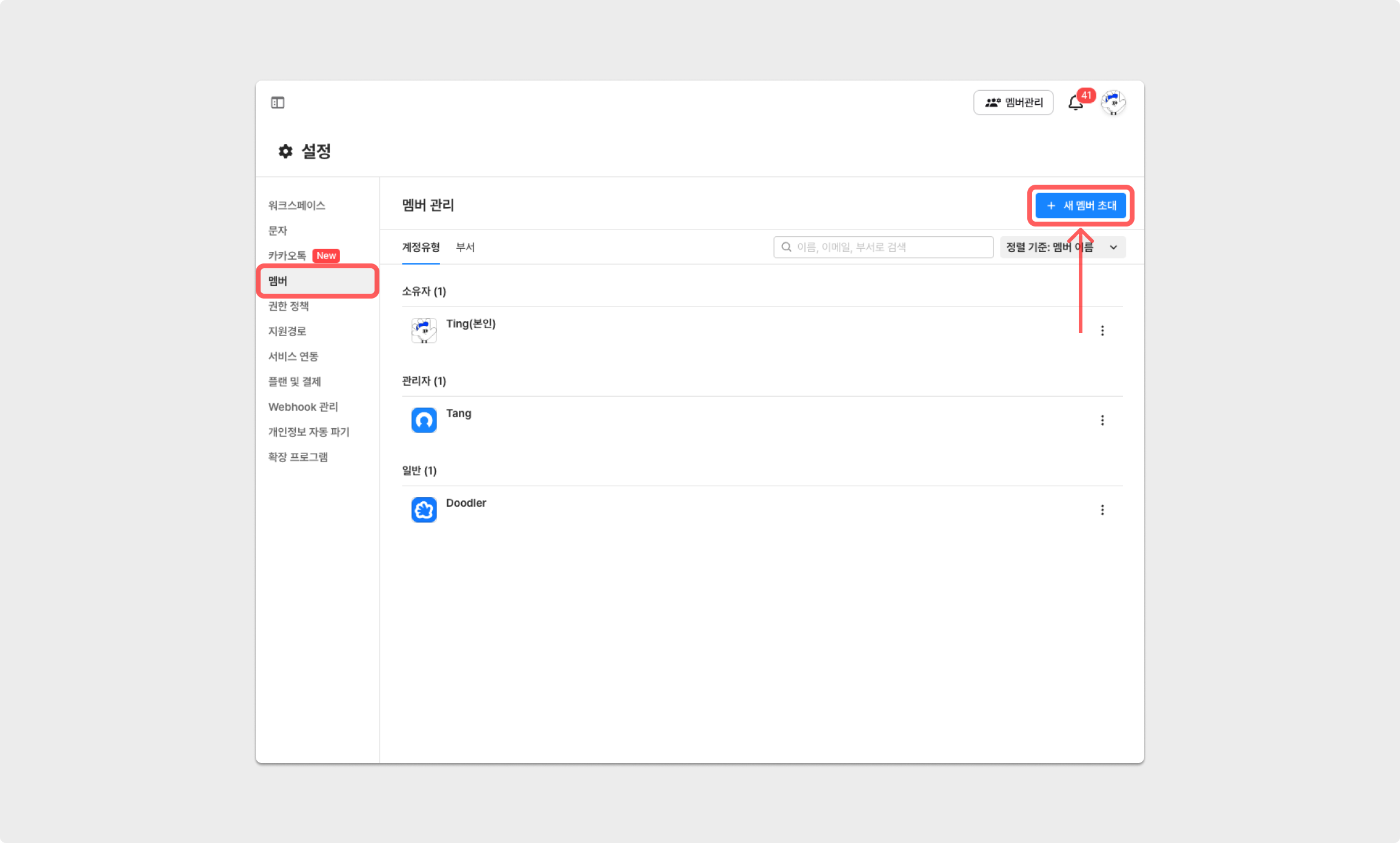 새 멤버 초대