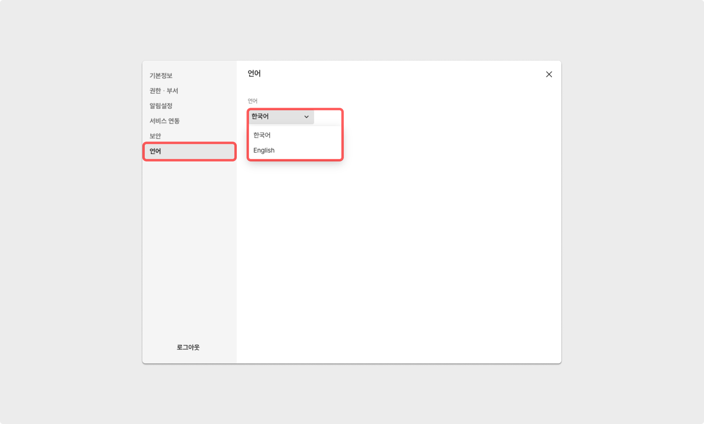 시스템 언어를 국문과 영문으로 자유롭게 설정해 보세요.