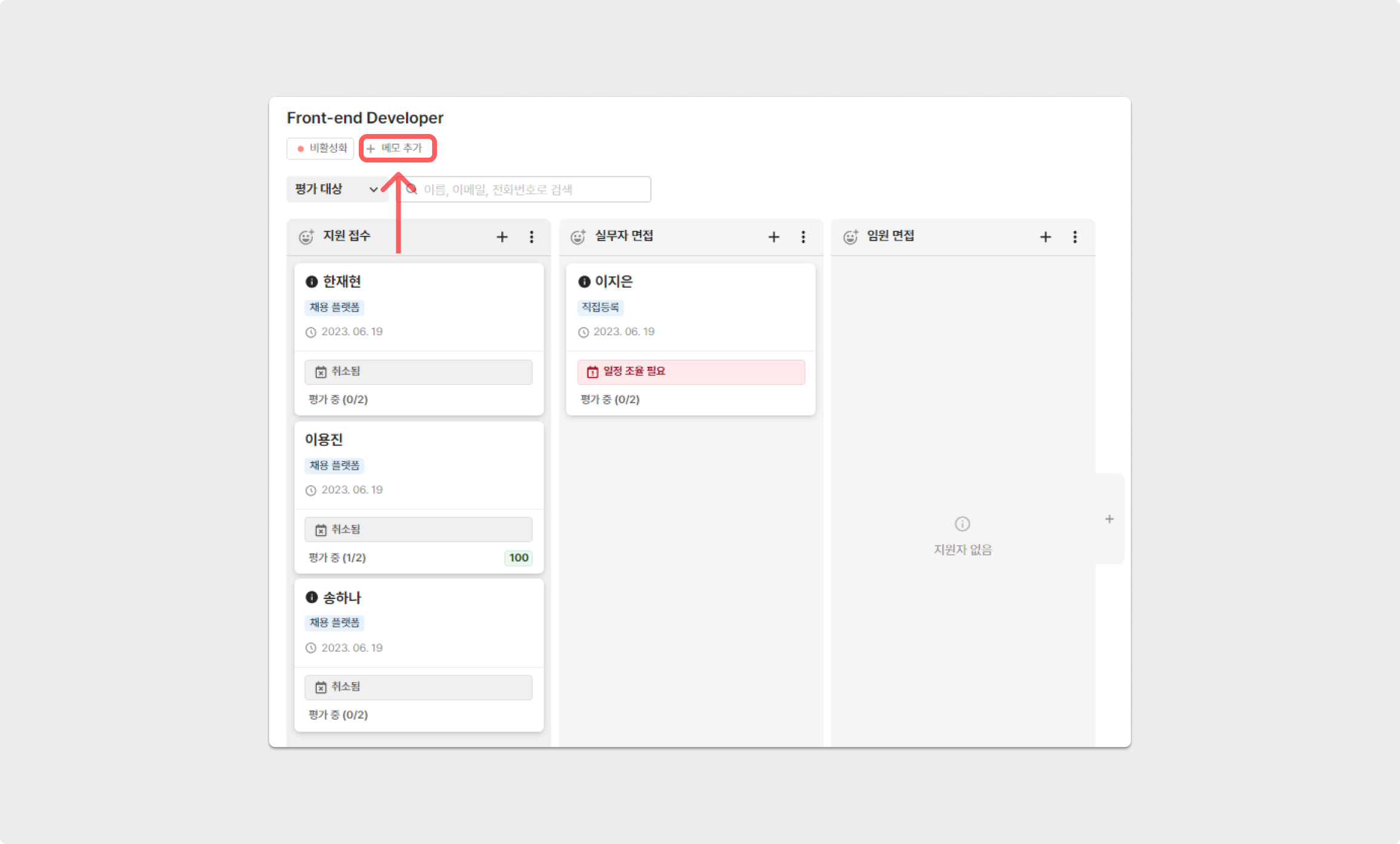 공고 상단의 '+ 메모 추가' 버튼을 클릭해 주세요.