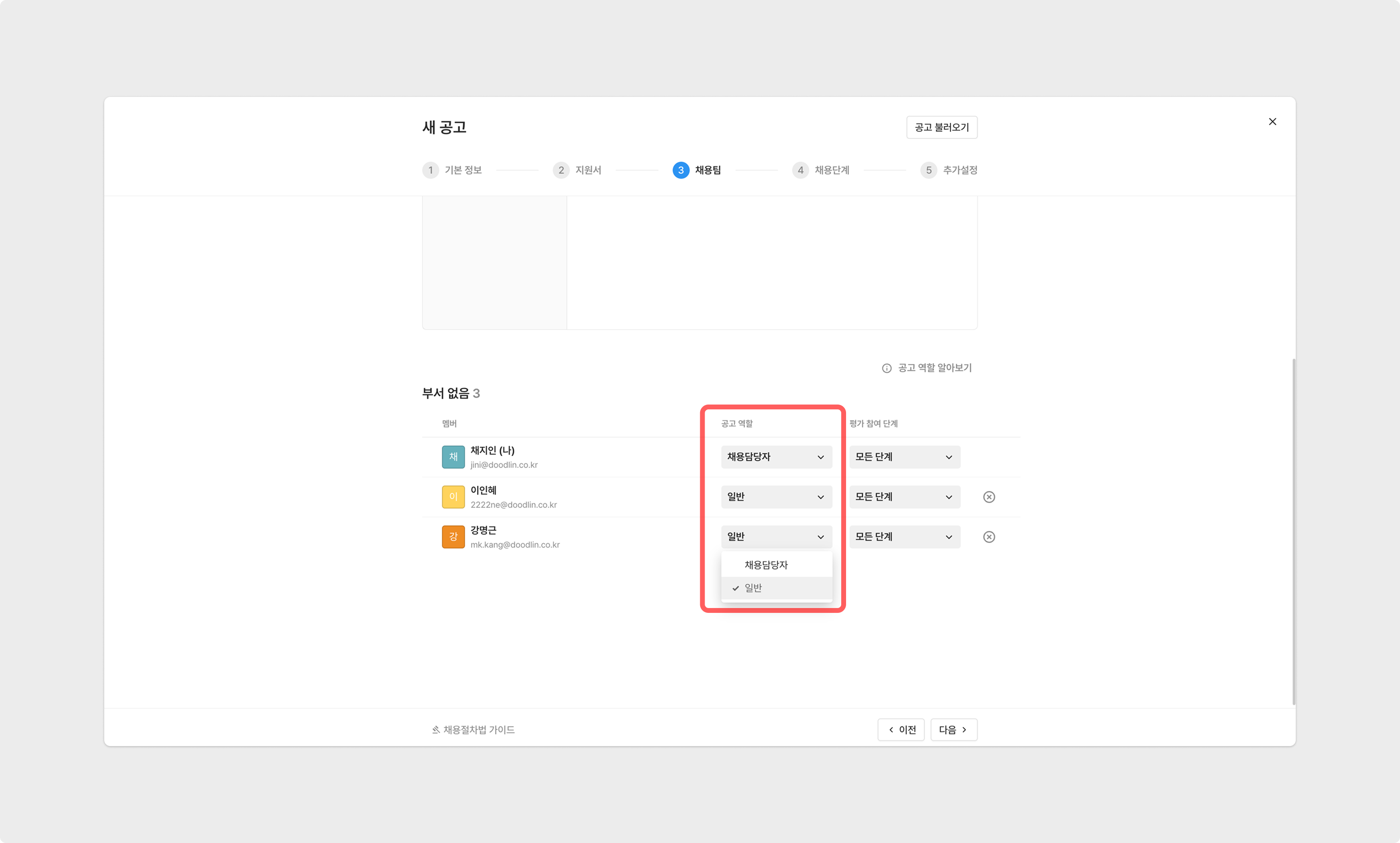 이는 '채용 단계 평가자'와 동일한 설정 입니다.