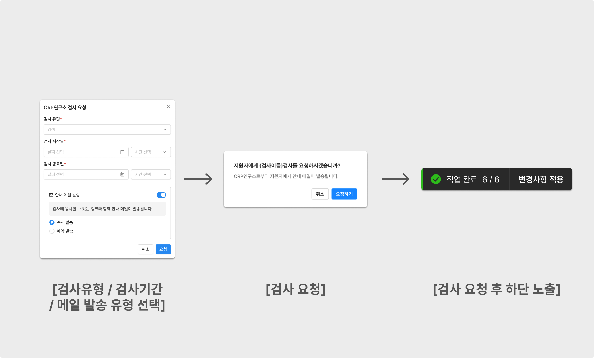 검사를 요청할 때 '안내 메일 발송'을 비활성화한다면 안내 메일이 발송되지 않습니다.