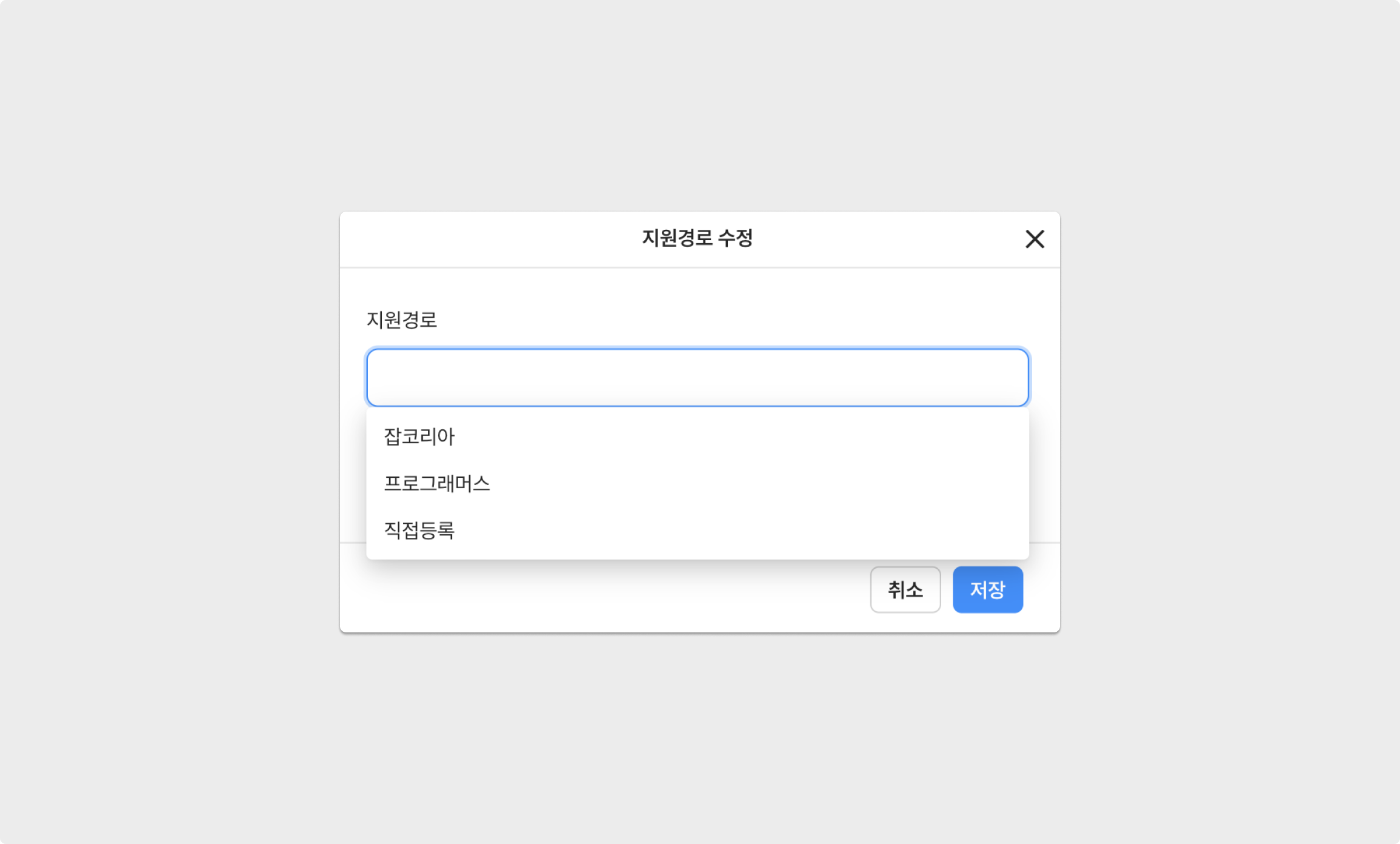 지원자 상세 페이지 상단의 [지원경로]를 클릭하면, 표시되는 지원경로의 이름을 변경할 수 있는 화면이 나타납니다.