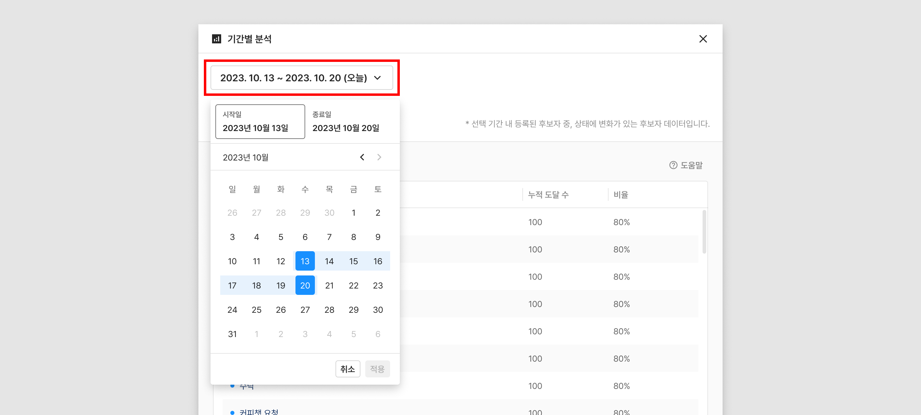 기간별 분석 - 기간 선택