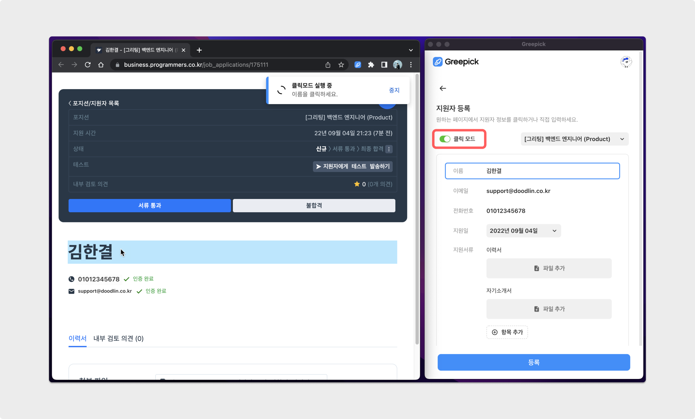 원티드 및 로켓펀치 등과 같이 플랫폼에 직접 지원되는 경우는, 그리팅에서 무료로 제공하는 부가 서비스인 [Greepick(그리픽)] 혹은 [Greepick Plus(그리픽 플러스)]를 통해 활용하실 수 있습니다.