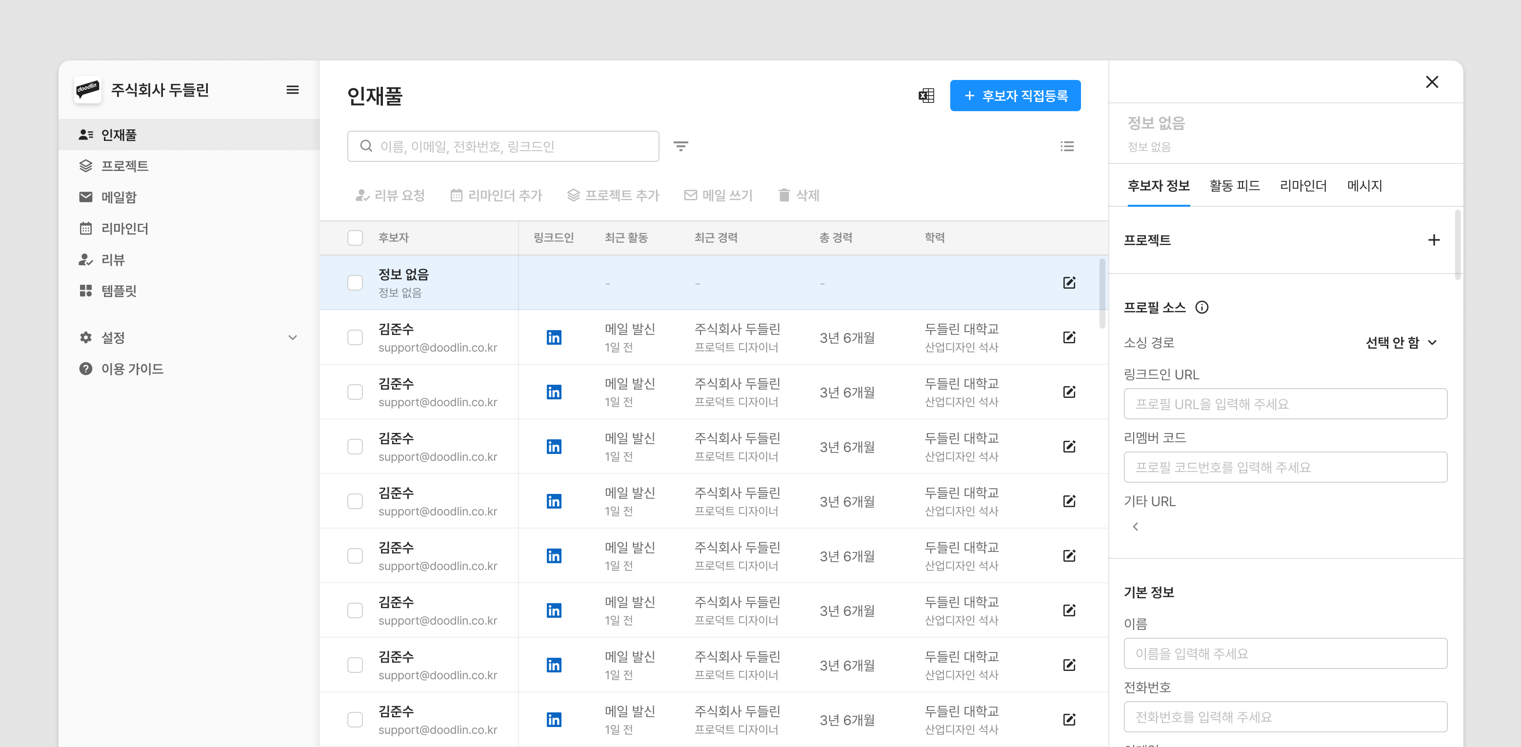 중복 후보자 등록 방지를 위해 '이메일, 전화번호, 링크드인 URL'중 중복된 정보를 가진 경우 해당 후보자를 제외하고 등록합니다.