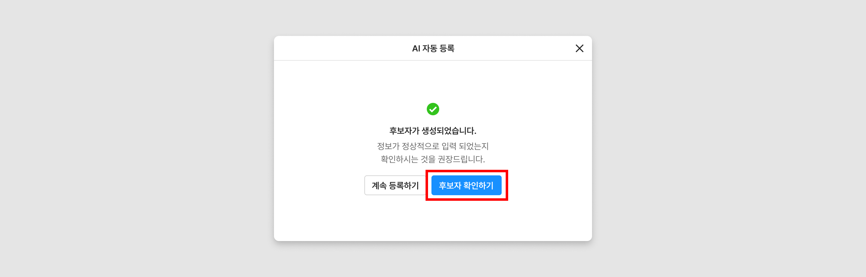 후보자 등록 완료 후, 정보가 정상적으로 입력되었는지 확인하는 것을 권장해 드립니다.