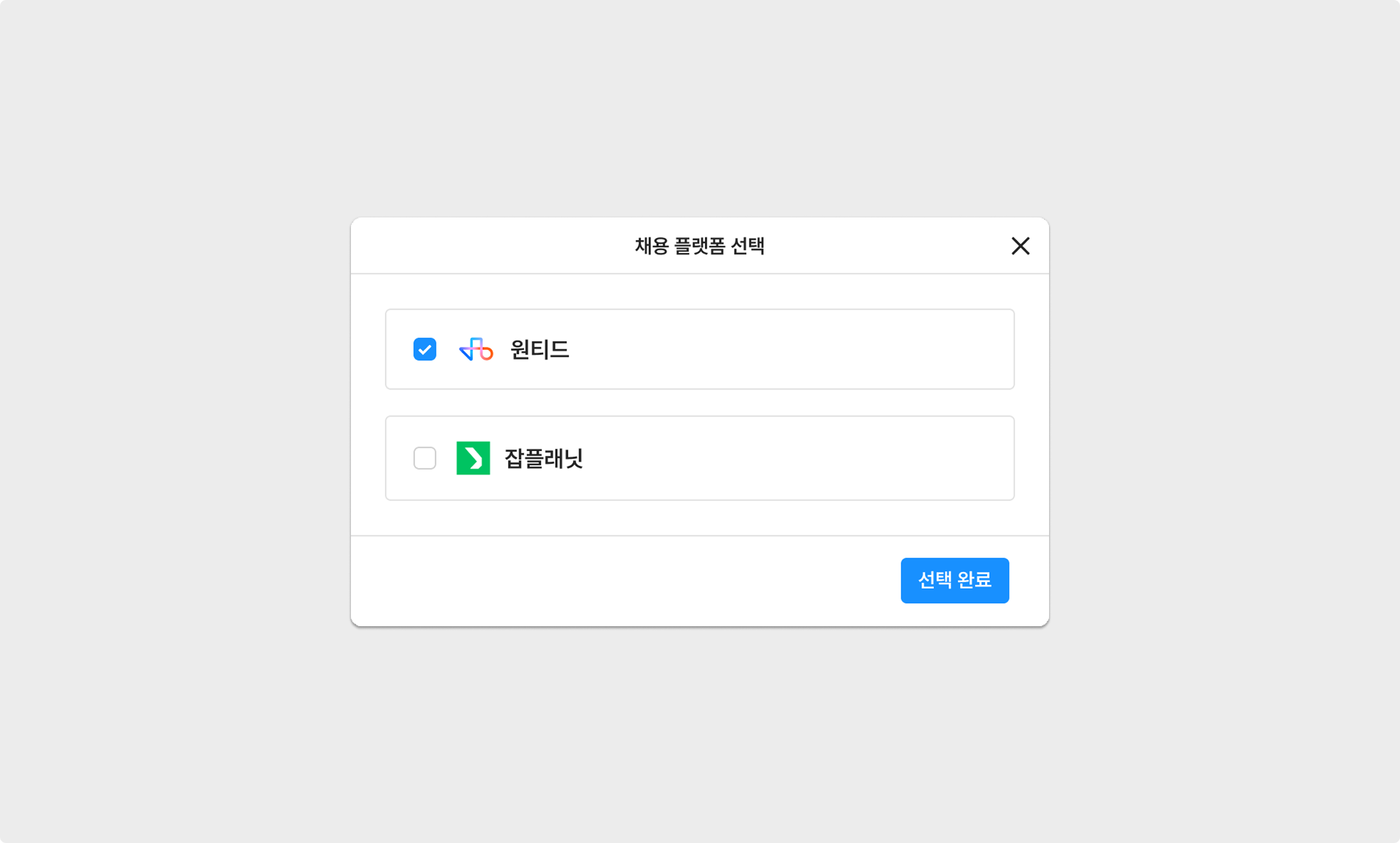 하나의 공고에 여러 직무가 연결된 공고의 연동은 원티드 공고 정책에 상이하여, 운영중인 직군/직무 중 1개를 선택해 연동할 수 있습니다.