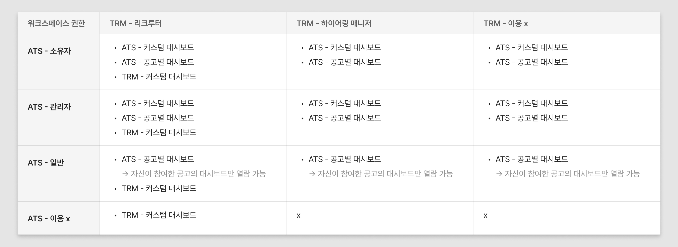 TRM 워크스페이스 권한별 대시보드 접근 권한