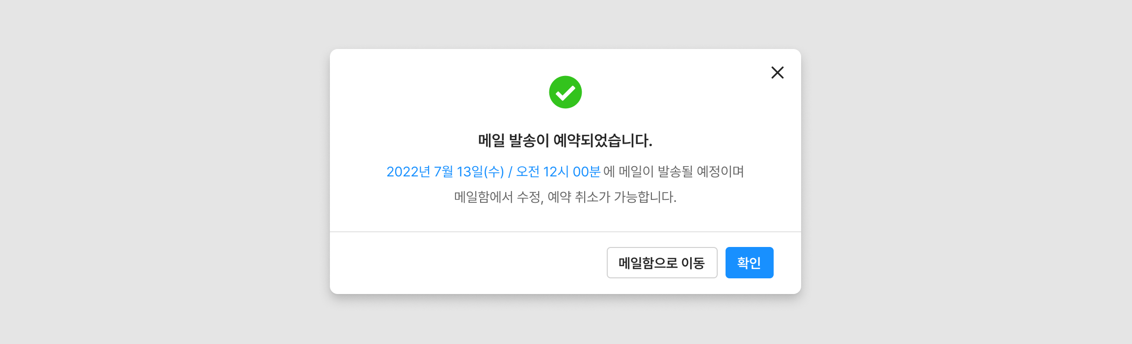 예약 발송 완료 시 메일함에서 확인할 수 있으며, 발송 전 수정 및 예약 취소할 수 있습니다.